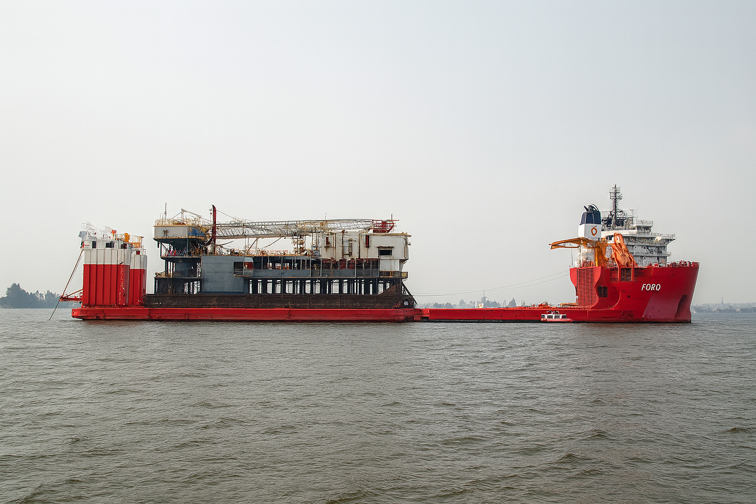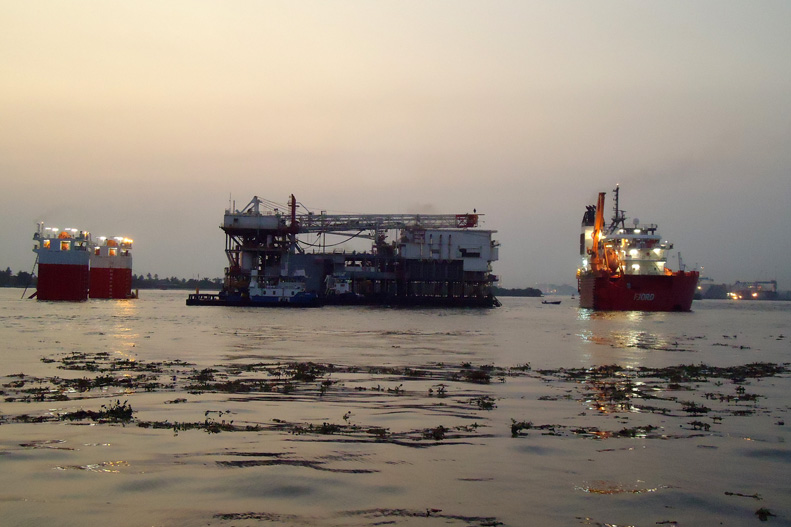 The OANDO rig had to be loaded onto a semisubmersible vessel for export, but normal semisubmersible vessels required min 20m draft for float on operations. This meant that the closest float on site would have been offshore Bonny, Nigeria or in Equatorial Guinea waters.